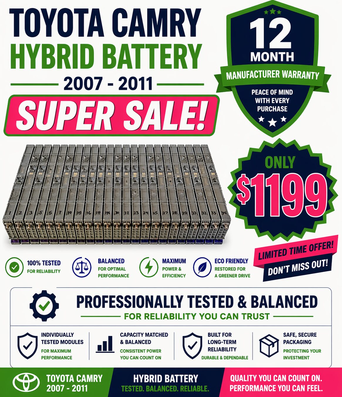 Toyota Camry Hybrid Battery 2007–2011 | 34 Module Set | Refurbished & Balanced | 12-Month Warranty